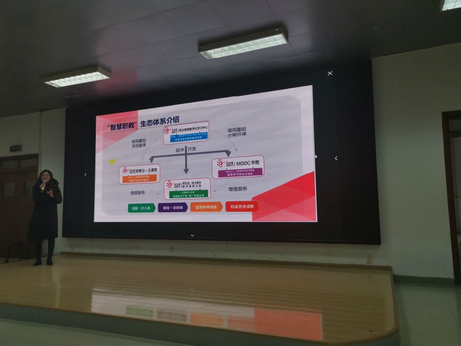 12月20日下午,学院在尚智楼大讲堂开展智慧职教云课堂培训。各系部授课教师参加了培训,会议由教务处处长戴启培主持。培训教师李曼曼向与会人员介绍了智慧职教生态系统、具体操作流程以及怎样利用智慧职教平台进行教学能力比赛。